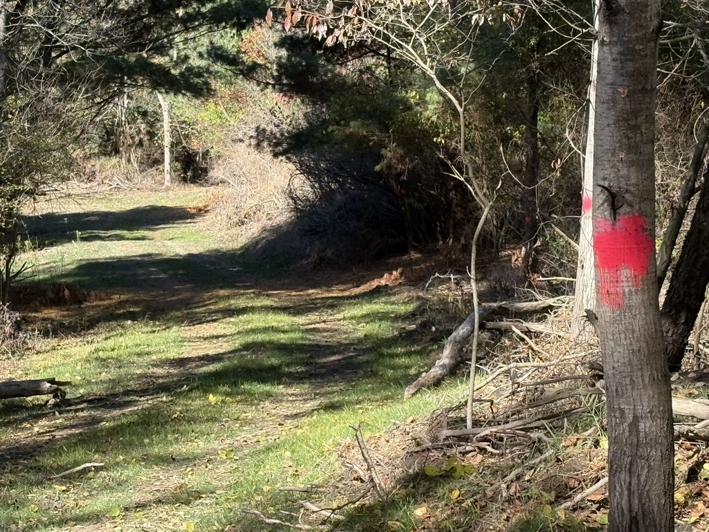 This is the mailbox for 6920 E Woodrow Ave, the property next to the 41.8 Acre Remainder lot. The 41.8 Acre Remainder lot is 1/4 mile to the West of this on E Woodrow Avenue.This is a Pink painted T-Post at the beginning of the 41.8 Acre Remainder lot or the East Side of the 41.8 Acre Remainder lot on E Woodrow Avenue.This is the entrance to the 41.8 Acre Remainder lot off of E Woodrow Avenue. It is labeled '1' as driveway 1 to the Remainder Lot.This is the entrance to the 41.8 Acre Remainder lot off of E Woodrow Avenue. You can see the Pink on the trees.This is another view of the entrance to the 41.8 Acre Remainder lot off of E Woodrow Avenue.This is Driveway '2' at the Border of the Pink lot (Remainder) and the Orange lot (Lot 13).This is the border stake between the Pink 41.8 Acre Remainder lot and the Orange lot (Lot 13). You can see it from E Woodrow Avenue.This is the entrance to the Orange lot (Lot 13) off of E Woodrow Avenue.This is an eagle looking at me while I was taking pictures.This is the entrance to the Green lot (Lot 14) off of E Woodrow Avenue.Stake that you can kind of see from E Woodrow Avenue between the Yellow lot (Lot 15) and Green lot (Lot 14).This is the entrance to the Yellow lot (Lot 15) from E Woodrow Avenue.The Blue lot (Lot 16) entrance off of E Woodrow Avenue. The Blue lot entrance is about 75 meters from the intersection of E Woodrow Avenue and 176th. It's the first entrance to the East of that intersection.This is the mail box entrance on 176th Avenue. It's 50 to 70 meters South of the intersection of 176th Avenue and E Woodrow Avenue, it's where the gate to what we call the Easement Road.This is a picture of the gated entrance to the Easement Road, on the left-hand side of the Easement Road would be the Purple lot (Lot 8) and on the right would be the Blue lot (Lot 16) as depicted by the paint colors on the trees.This is a Blue (Lot 16) property stake off of 176th Avenue, inside the gate to the right.A little more ahead inside the gate to the left about 20 meters is the Purple stake (Lot 8) for the Purple lot that sits on 176th Avenue all the way from there to the North Branch of the White River.This is a picture of the Easement Road after you pass through the gate where you get access to all the lots except for the Remainder lot.This is the driveway that goes from the Easement Road to the edge of the hill that overlooks the North Branch of the White River for the Purple lot (Lot 8). You head down the Easement Road from 176th Avenue and find the driveway on the left, if you look to your right you will see the Blue lot driveway (Lot 16) that goes South to E Woodrow Avenue. Lots 13, 14, 15 & 16 all have continuing driveways to the lots North of the Easement road.This is where the Purple (Lot 8) driveway meets the hill overlooking the North Branch of the White River.If you go down the Easement Road and look to your right you would see a driveway for the Blue lot (Lot 16) this driveway goes to E Woodrow Avenue. Every lot connects from E Woodrow Avenue to the Easement Road.This picture shows a Red arrow (Lot 9) pointing you in the direction of the Red lot driveway.This picture shows the Red lot (Lot 9) driveway entrance off of the Easement Road that leads you to the North Branch of the White River.This is a picture looking down at the river from the end of the Red lot driveway (Lot 9).This is looking down the Red driveway (Lot 9). We actually made a cul-de-sac next to the river so you can easily turn around and go back towards the Easement Road. The tree in the middle is painted Red and the driveway goes around the tree.There is what looks like a driveway on the Yellow lot (Lot 15), but it is not a Driveway that leads back to E Woodrow Avenue. Therefore two trees were painted Yellow with the word 'NO' showing this driveway leads no where important.This is the Yellow driveway (Lot 15) that goes back to E Woodrow Avenue. Wherever feasible and where it made sense the trees close to the driveway are painted so you know you are on the correct driveway. This has been repeated on most driveways.This is the Grey lot (Lot 10). I'm showing this picture in particular because Grey is very hard to see on on the trees, in some cases I painted where limbs were cut off because it is easier to spot the Grey.When marking the Grey lot (Lot 10) I used this arrow showing, hey come down here for the Grey lot that goes to the river.This is the Grey lot (Lot 10) driveway that goes to the North Branch of the White River. It's a very large driveway and is a very beautiful semi wooded driveway, one of the best lots!This is the end of the Grey lot driveway (Lot 10) looking at the North Branch of the White River. The elevation is lower here and very beautiful.Another picture showing the view of the North Branch of the White River from the Grey lot (Lot 10).Another view showing the North Branch of the White River from the Grey lot (Lot 10).This is the driveway of the Green lot (Lot 14) going off the Easement Road towards E Woodrow Avenue.A number of arrows were painted on trees saying 'hey you're going down the easement road, go this way to get on the Green lot (Lot 14)' where there's a driveway.Other side of Green lot (Lot 14) driveway with an arrow. The knot holes are painted because they hold the color well.This big driveway goes to the Gold lot (Lot 11). It's very hard to see gold on the trees, but it's a major intersection where the road splits in three directions off the Easement Road, one going to the pond on the White lot (Lot 12), one going down the trail to the Orange lot (Lot 13) and one going to the Gold lot (Lot 11).As you go down the Easement Road you come to this tree and it points you to the Gold lot (Lot 11), which is to the left. Again Gold is very hard to see on the trees so this was the best way to direct you to the Gold lot (Lot 11).After you make a left on the Gold lot (Lot 11) driveway you can't miss this big maple tree and you can see it from the easement road. It'